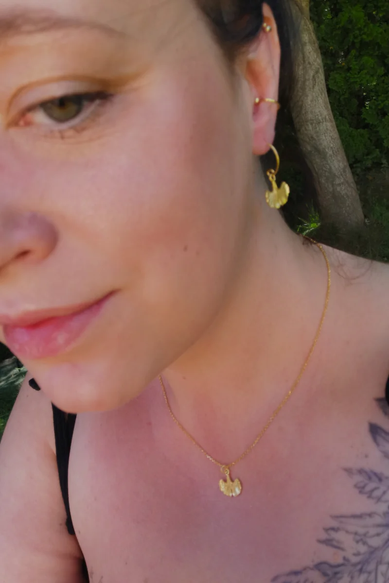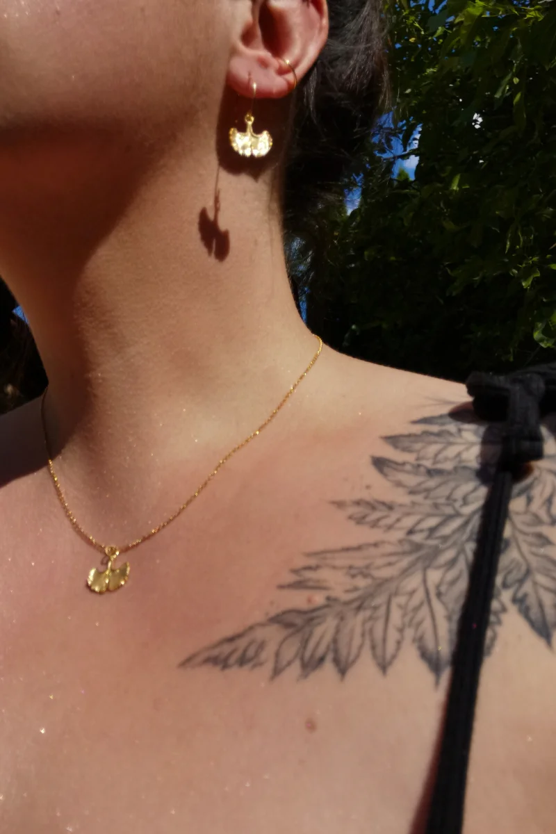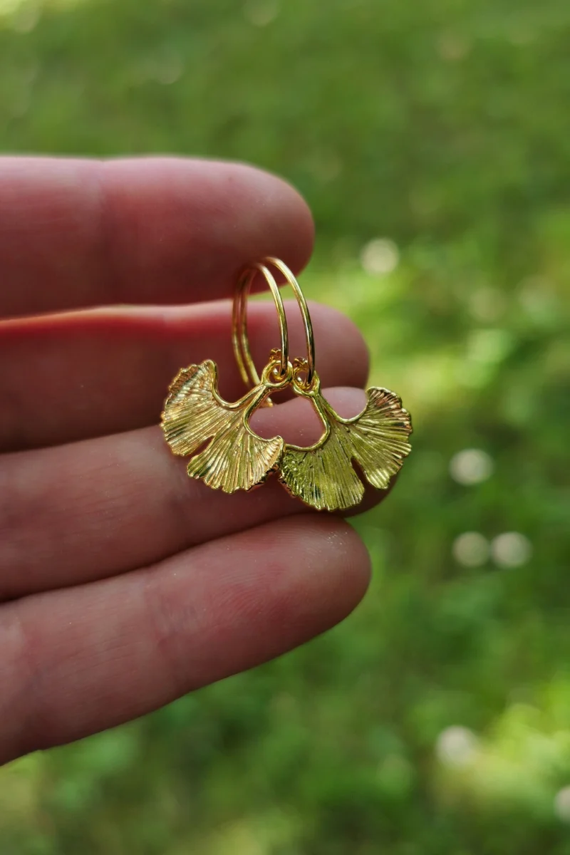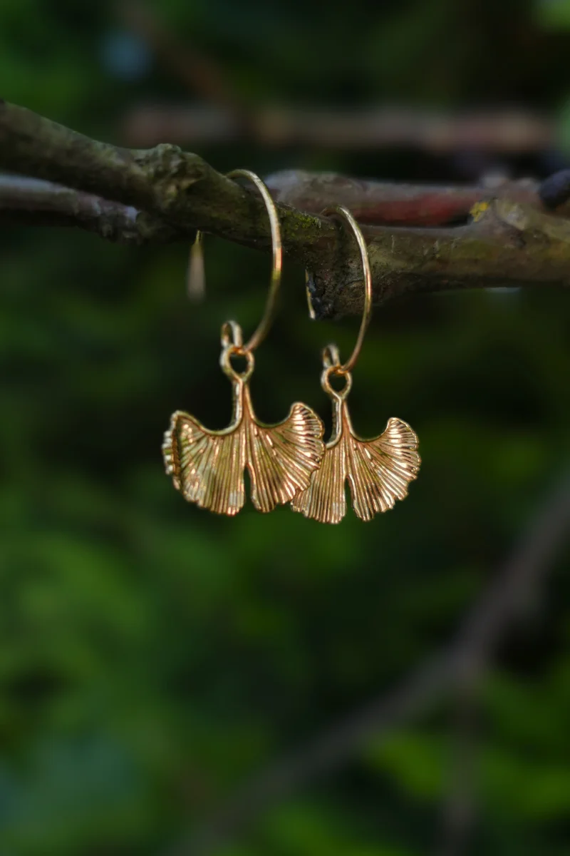 Urocze kolczyki z miłorzębem to niebanalny akcent, który łączy w sobie piękno natury i duchowość.